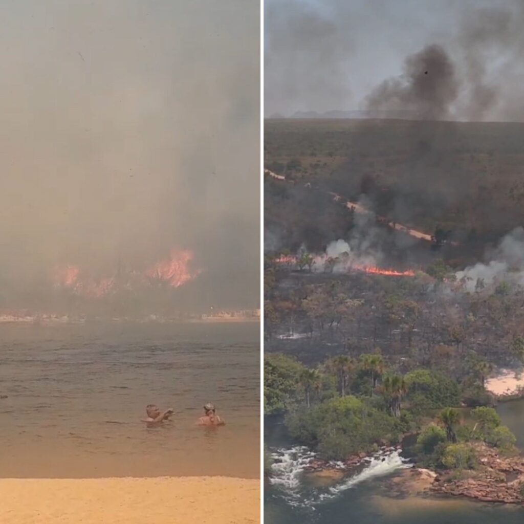 Focos se concentram na serra do Espírito Santo. Turistas também flagraram chamas nas proximidades da prainha do Rio Novo. Brigadistas se mobilizam para conter as chamas em parques estaduais do Tocantins