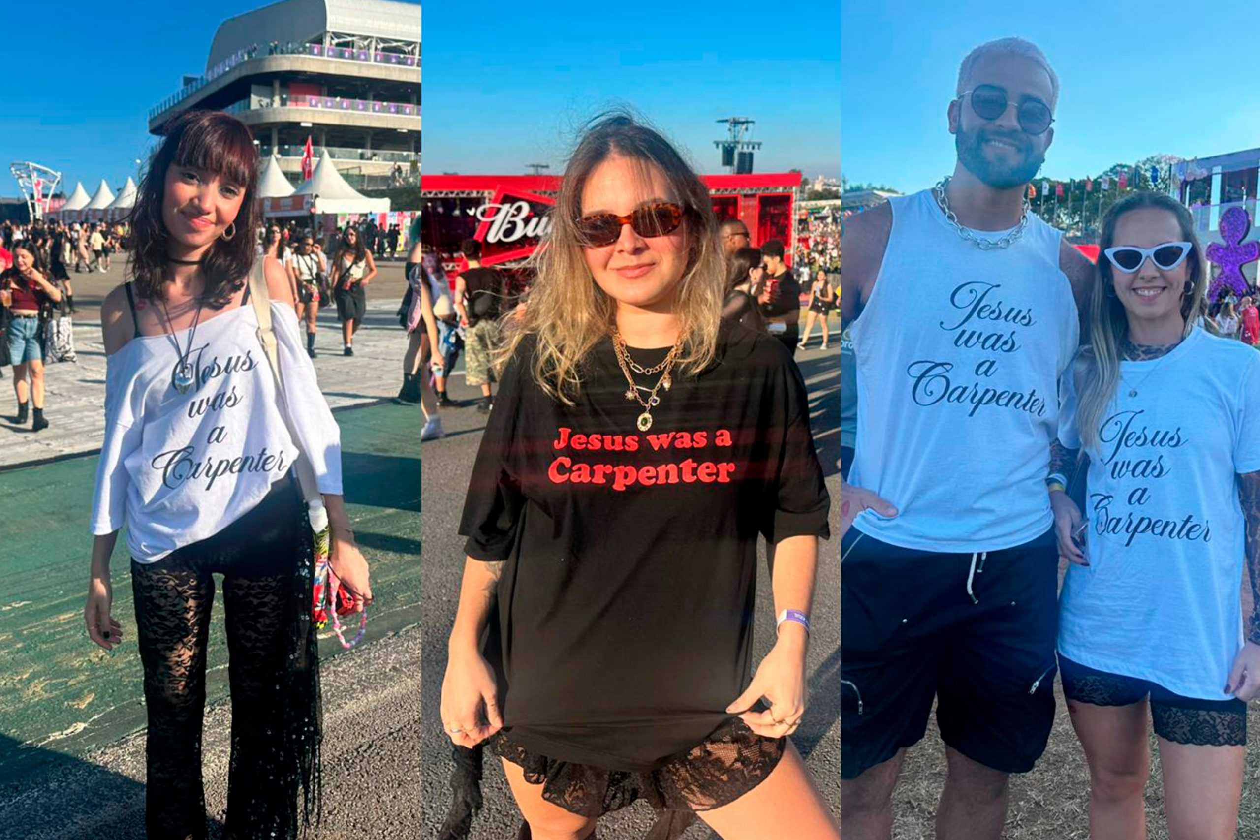 A grande atração do primeiro dia de Lollapalooza nesta sexta-feira (20) é Sabrina Carpenter. Parte dos fãs veio para o Autódromo de Interlagos, em São Paulo, com uma camiseta com a frase: Jesus was a carpenter (Jesus foi um carpinteiro, na tradução literal).