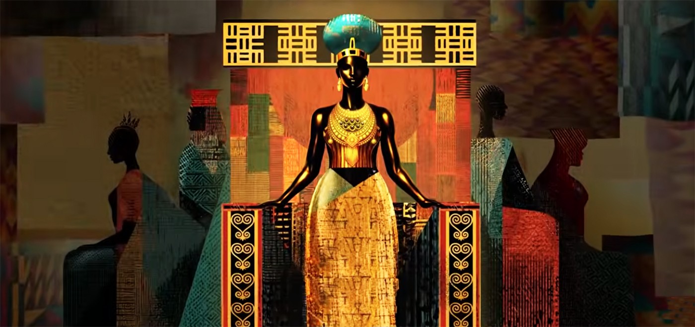 Criada pela equipe de Will Nunes sob supervisão de Chris Calvet, a abertura expõe cores que remetem à África – ponto de partida da história, iniciada com golpe no fictício reino de Batanga – entre símbolos e referências da arte africana e da cultura afro-brasileira.