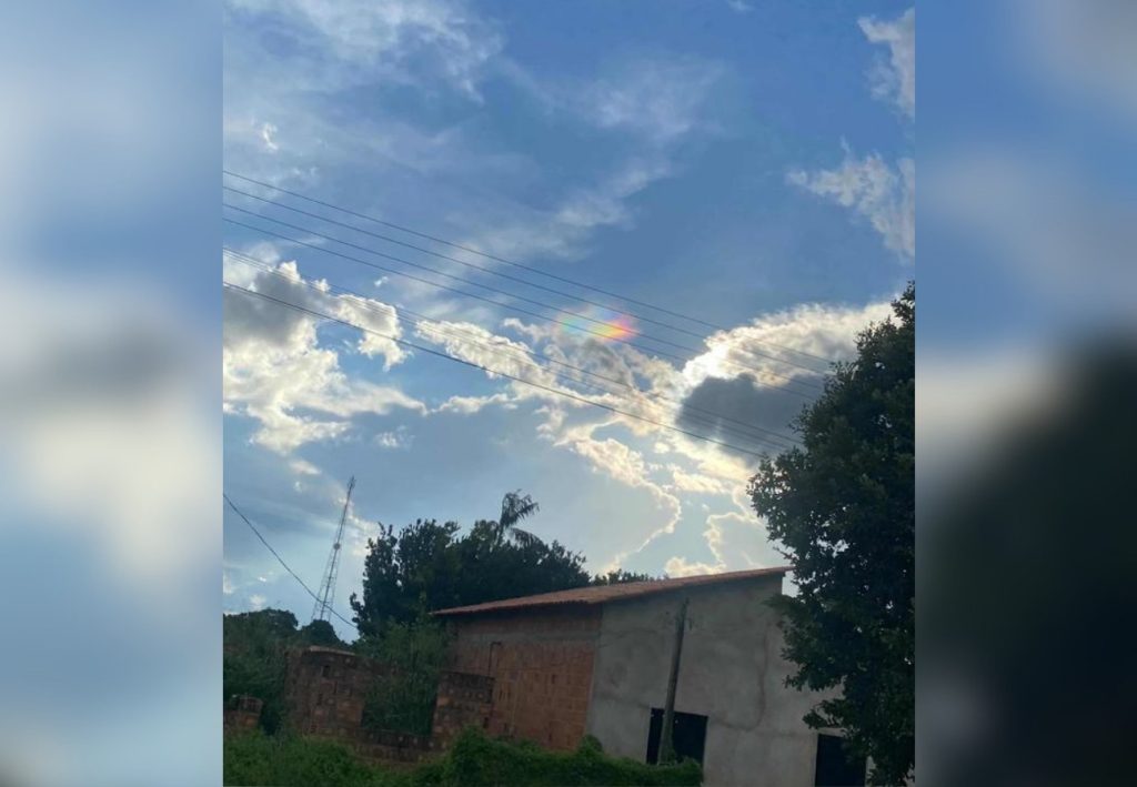 “Normalmente, isso acontece quando os raios solares refletem nas gotículas de água de uma nuvem, formando essas cores. Dependendo do ângulo da luz, esse reflexo pode aparecer dessa forma”, explicou.